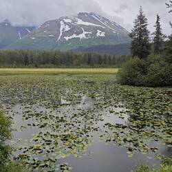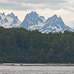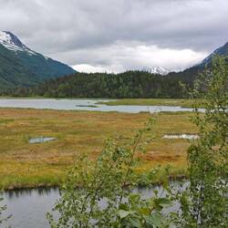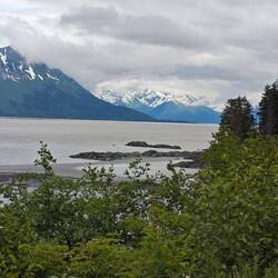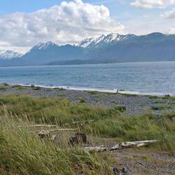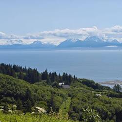 Herrlichen Blick über das Cook Inlet zum gegenüber liegenden Lake Clark Nationalpark.