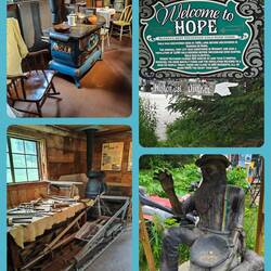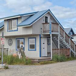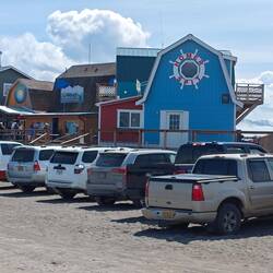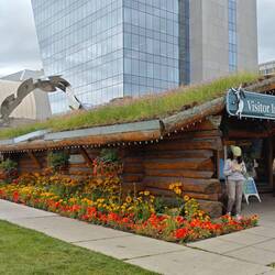 Hübscher Fluss, aber wir sehen keine Lachse. Nochmals Downtown. Restaurants und Souvenir Shops.. nix, was man haben muss.