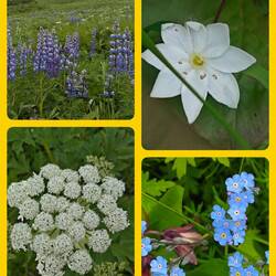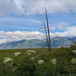 Zwei kleine Wanderungen in der näheren Umgebung. Lupinen Wiesen. Und so weißes Zeug, das vielleicht Bärenklau ist.
