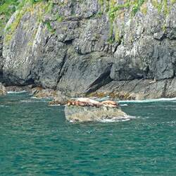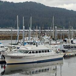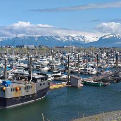 Seldovia, am anderen Ende der Kachemack Bay. Man kommt an einem Vogelfelsen vorbei.