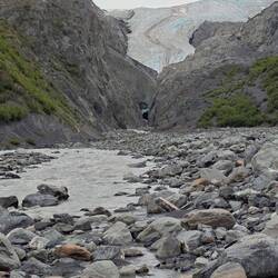 Schöne Wanderung zum Exit Glacier. Hier haben sie immer wieder Schilder aufgestellt, wie weiter der Gletscher in welchem Jahr reichte. Erschreckend