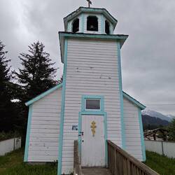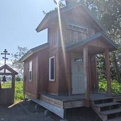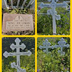 Eklunta, ein Ureinwohner Dorf mit einer alten russisch-orthodoxen Kirche und Spirit Houses. Grabhäuschen derRead more