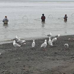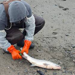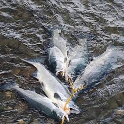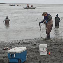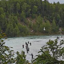 An der Stelle an der der Kasilof River in das Cook Inlet fließt sind massenhaft Lachse unterwegs. Und werden gefangen.Read more