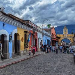 📌 A quick transfer to Antigua from the lake and we were keen to see this renowned area of Guatamala. The town was beautiful, a former Spanish colonial town with colourful shops and houses lining the streets that was surrounded by several volcanoes in the distance. We spent 2 nights enjoying Antigua, browsing the handicrafts shops, the beautiful cafes and some great food.