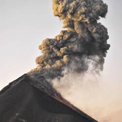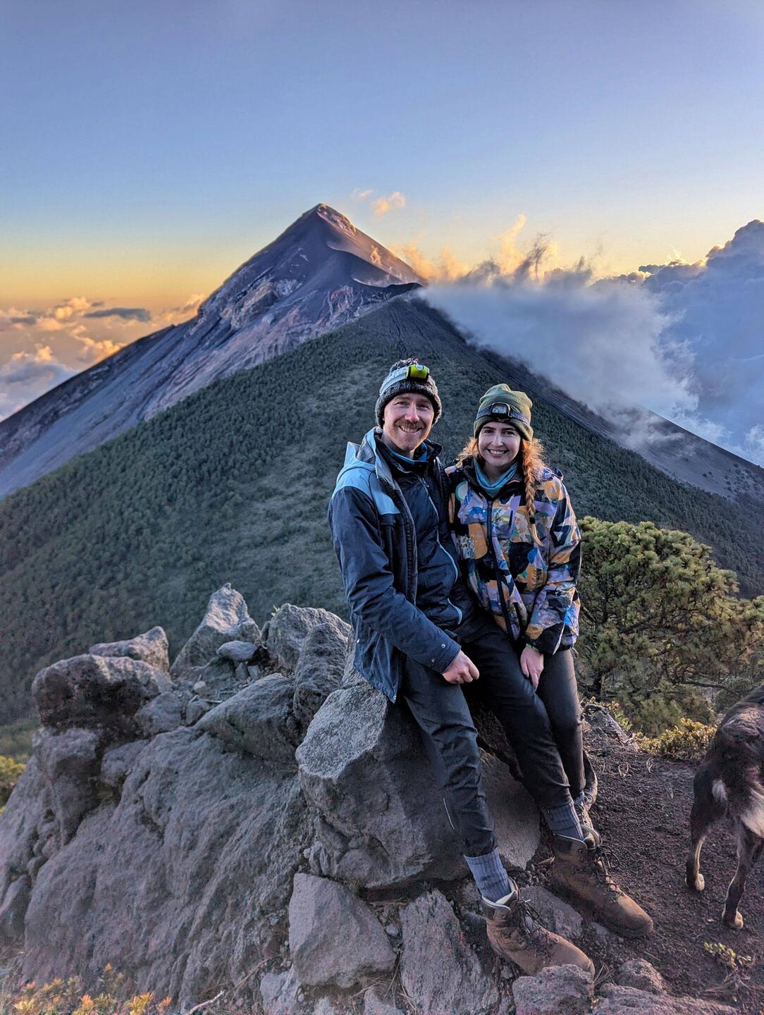 📌 We were sharing with a Canadian woman and we sort refuge in our thin walled tin shelter which kept the wind out but not much else 😅 As we sat there the clouds parted after a while and the volcano was in sight!! We were then treated to a couple of beautiful eruptions so the wind and cold was less bothersome with all the excitement. As the sun set began we headed up to a vantage point (opting to skip the longer hike to get closer) and it was incredible, particularly as it got darker because we got our first glimpse of lava!!! 😍 We had a very cold windy night with visibility shifting but one benefit of the lack of sleep was the occasional look out the window to see a lava eruption 🌋 A rough night was soon forgotten as the sunrise was incredible again! We were so lucky and this was one of the most incredible things and Christmas eves/morning we have done as travellers.