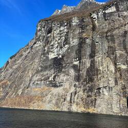 Der Geirangerfjord ist einer der bekanntesten Fjorde Norwegens und gehört seit dem 14. Juli 2005 zum UNESCO-Weltnaturerbe. Und wir dürfen ihn heute per Fähre bis Hellesylt durchfahren.