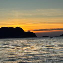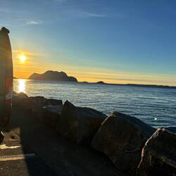 Bei strahlendem Sonnenschein erreichten wir den Stellplatz am Hafen, ergatterten den letzten Parkplatz und verweilten in Ålesund einige Stunden bis zu einem traumhaften Sonnenuntergang.Baca lagi