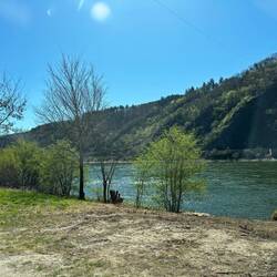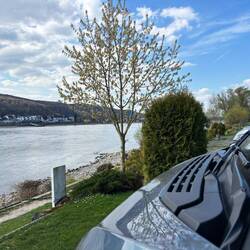 Eine letzte wunderschöne Route entlang des Rheines auf der B42, mit Blick auf das Kaiser-Wilhelm-Denkmal am Deutschen Eck in Koblenz und am Loreleyfelsen, bis Rüdesheim und … eine letzte Fährfahrt 😉