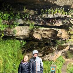 We then got on our way, 2 1/2 hours, and headed up the mountains. It was just starting to lightly rain and the clouds were coming in. We only have this afternoon and tomorrow morning here at the Blue mountains so we took the chance to get some views in. We went to Wentworth falls, and even with the rain and the low clouds, we saw some beautiful views. The favourite was the under cliff walk with the greenery growing from the cliffs. We probably walked another 5km and the kids were amazing.