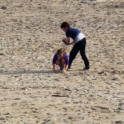 We had to clean the apartment before heading off. We sent the kids down to the beach to play soccer and of course they made friends. Friends with a family from Melbourne and who play for Waverley baseball. Brandon went up to him as he was wearing the baseball cap. The boys played soccer and the girls waded in the ocean and did gymnastics.