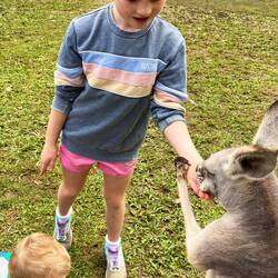 Brandon’s highlight was feeding the kangaroos and touching George the snake (very smooth), while Inara said she liked it all. Her name does mean goddess of the wild animals.