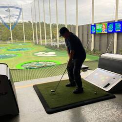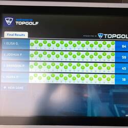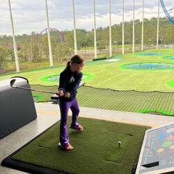 After swimming, the kids got showered and we headed off to Top Golf. I had so much fun and it was definitely a highlight. I had never been to a driving range before and this was a bit more exciting and you could play against each other or in teams. We were only going to an hour but we extended it another hour. The food was great too and Brandon said they were the best chicken nuggets ever. I liked the pretzel sticks.