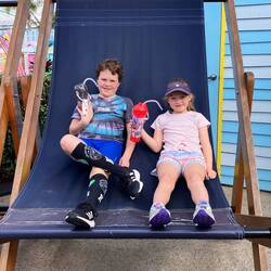 The kids got their scooters out after we packed up the car and we walked along the river boardwalk and then back to Forster beach.
