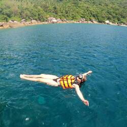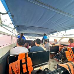 Wir sind heute mit dem Speedboat zu der Insel Koh Tao gefahren. Die Fahrt mit dem Boot dauert ungefähr anderthalb Stunden dorthin. Es war ein hoher Wellengang auf dem Meer und die anderen TouristenBaca lagi