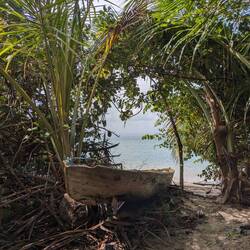 Auf unserer Insel, Yanis, gab es ein paar mehr Hütten in sehr ruhigem Gewässer, da ein nahes Riff alle Wellen brach. Die Hütten waren super einfach, aus Holzbrettern zusammen gezimmert, durch die beständig angenehmer Wind wehte. Kein Internet und Strom nur für die Notbeleuchtung, dafür Hängematten, Kokosnüsse und eine irreführende Duschkonstruktion (mit Meerwasser).