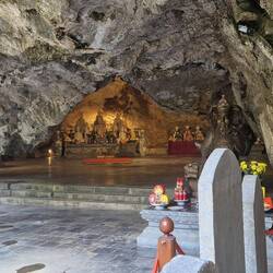 wunderschöne Landschaft, aber leider viel zu viele Besucher. Glücklicherweise geht es nur mit Ruderboot über den Fluss, so dass trotzdem Ruhe herrscht und die Natur genossen werden kann.