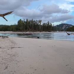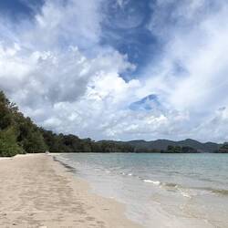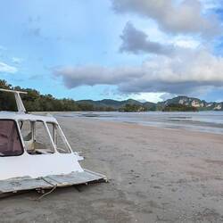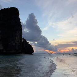 Ausflug zum "Shell Cemetery", wo in den Gesteinsplatten viele kleine versteinerte Muscheln zu sehen sind. Den Rest des Tages am schönen Strand von Ao Nam - bis der Regen wieder anfing.
