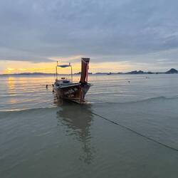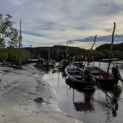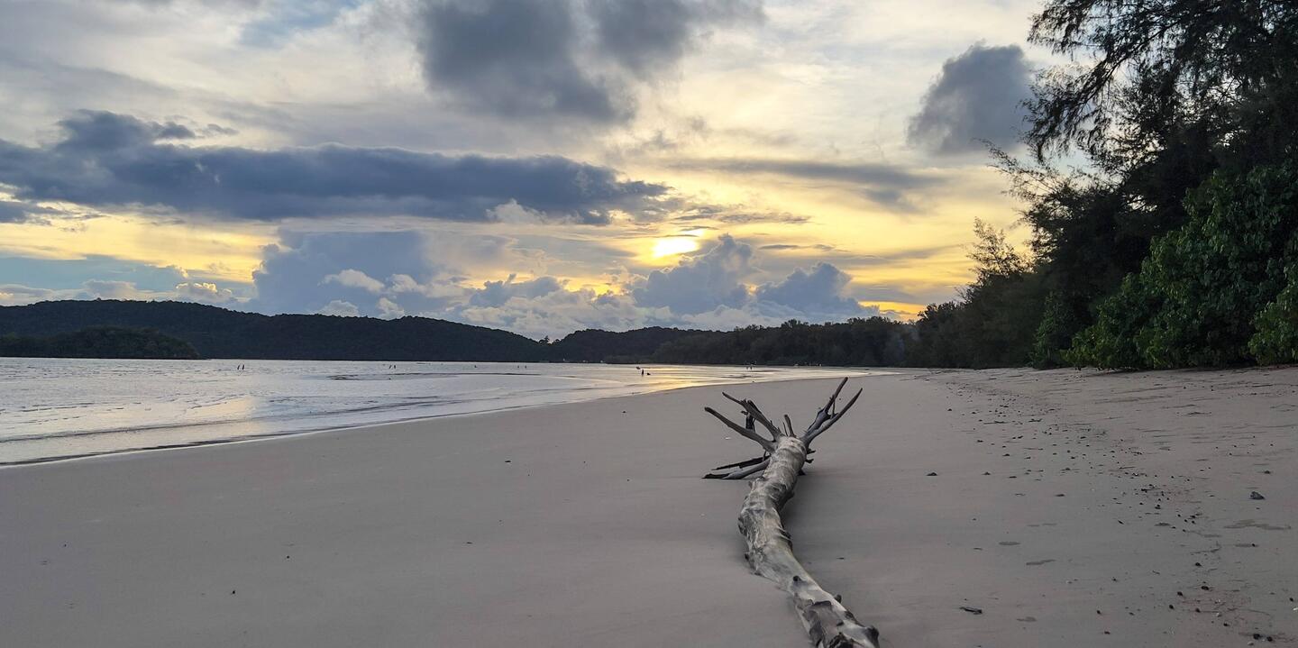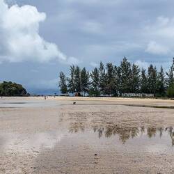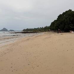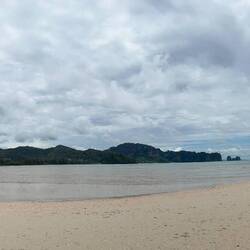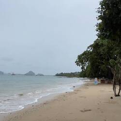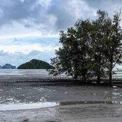 Gestern auf zum Khlong Muang Beach - aber etwas verregnet und grau. Abends ein Spaziergang bei Ebbe.