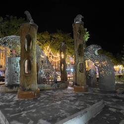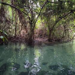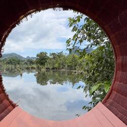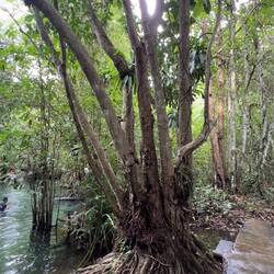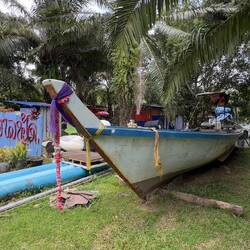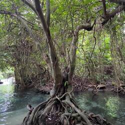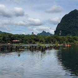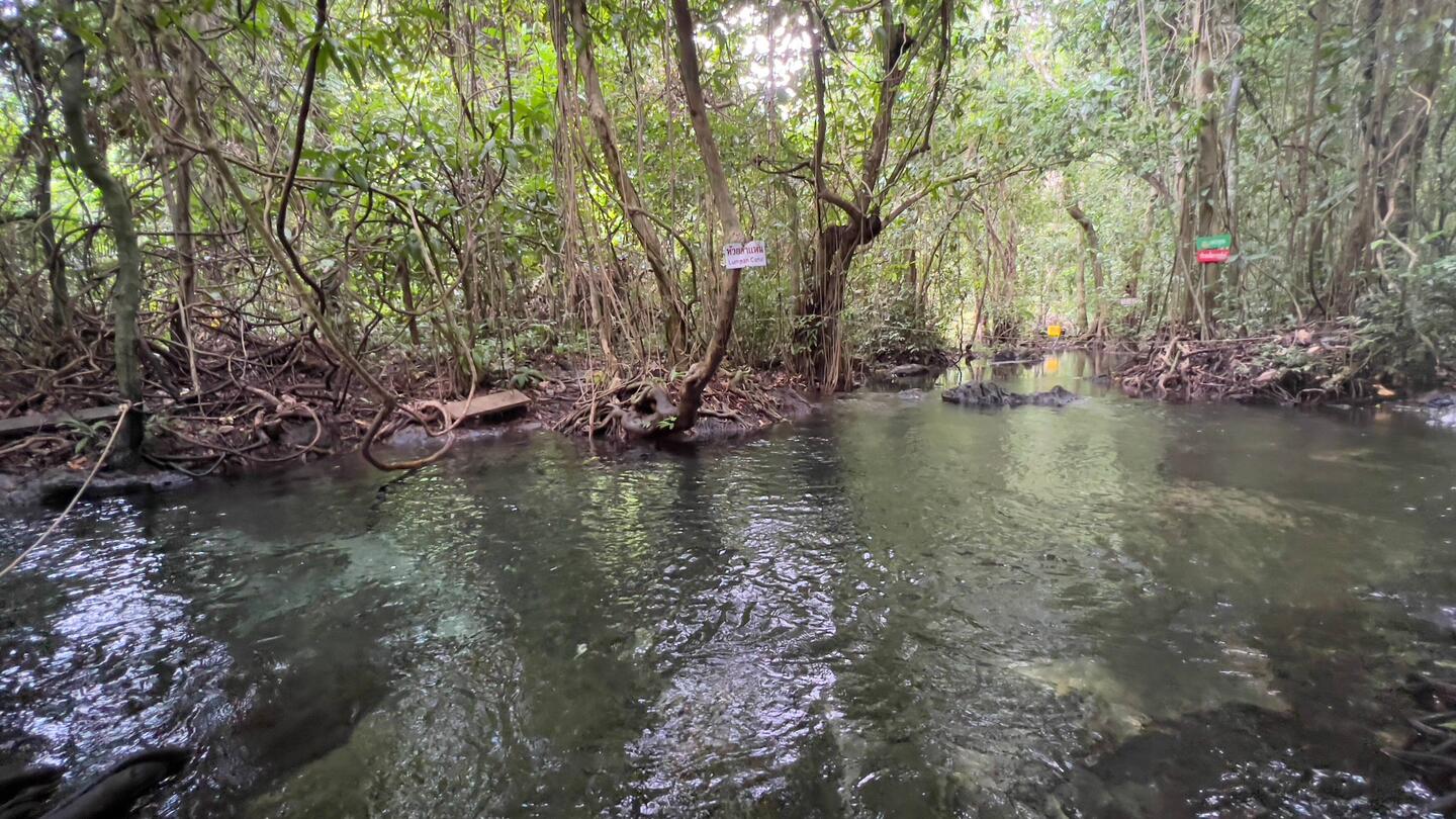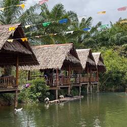 Ein Stück weiter liegt Klong Root, ein Kanal mit sehr sauberem und klaren Wasser. beliebtes Ausflugsziel zum Baden und Paddeln. Ein Restaurant macht Werbung, dass dort auch für Jurassic Park RebirthLeggi altro