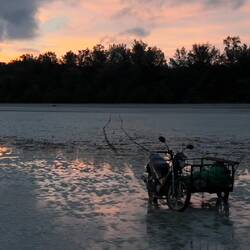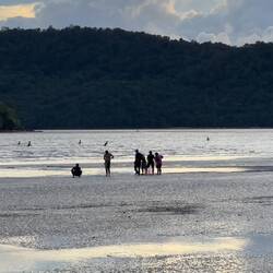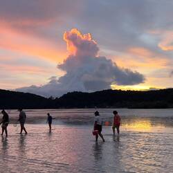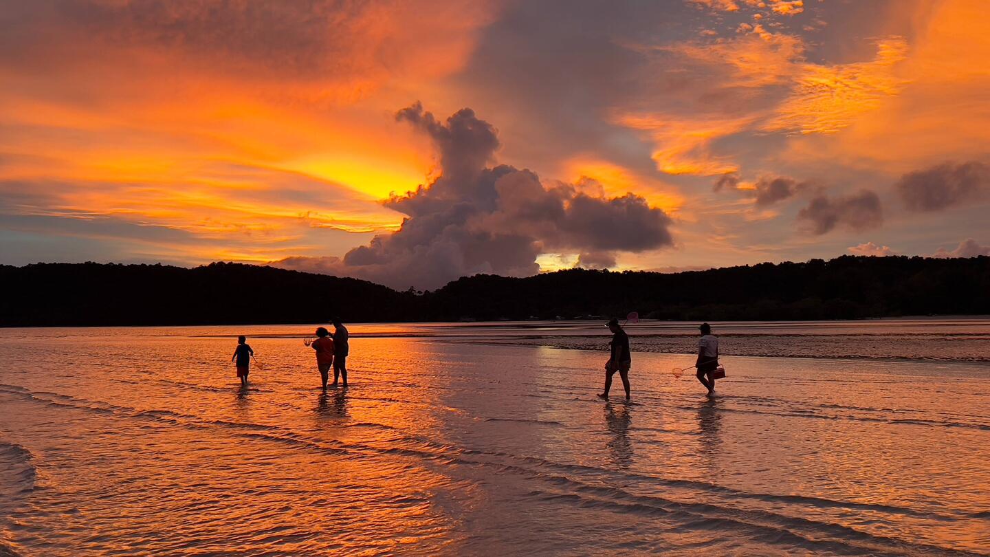 Zur Dämmerung war Ebbe und und einige Familien gingen hinaus, um Krabben zu fangen. Licht und Stimmung waren perfekt.