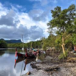 Tag mit Regenpause. Möglichkeit für einen Morgenlauf am Fluss in Krabi.