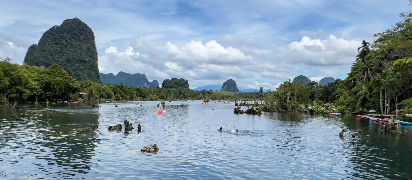 nicht weit entfernt liegt die Sa Kaeo Cave und fast nebenan ein Emerald Pool, einem Teich mit blau scheinendem Wasser.
