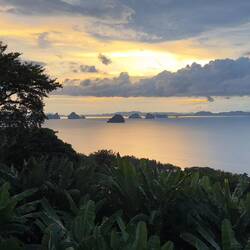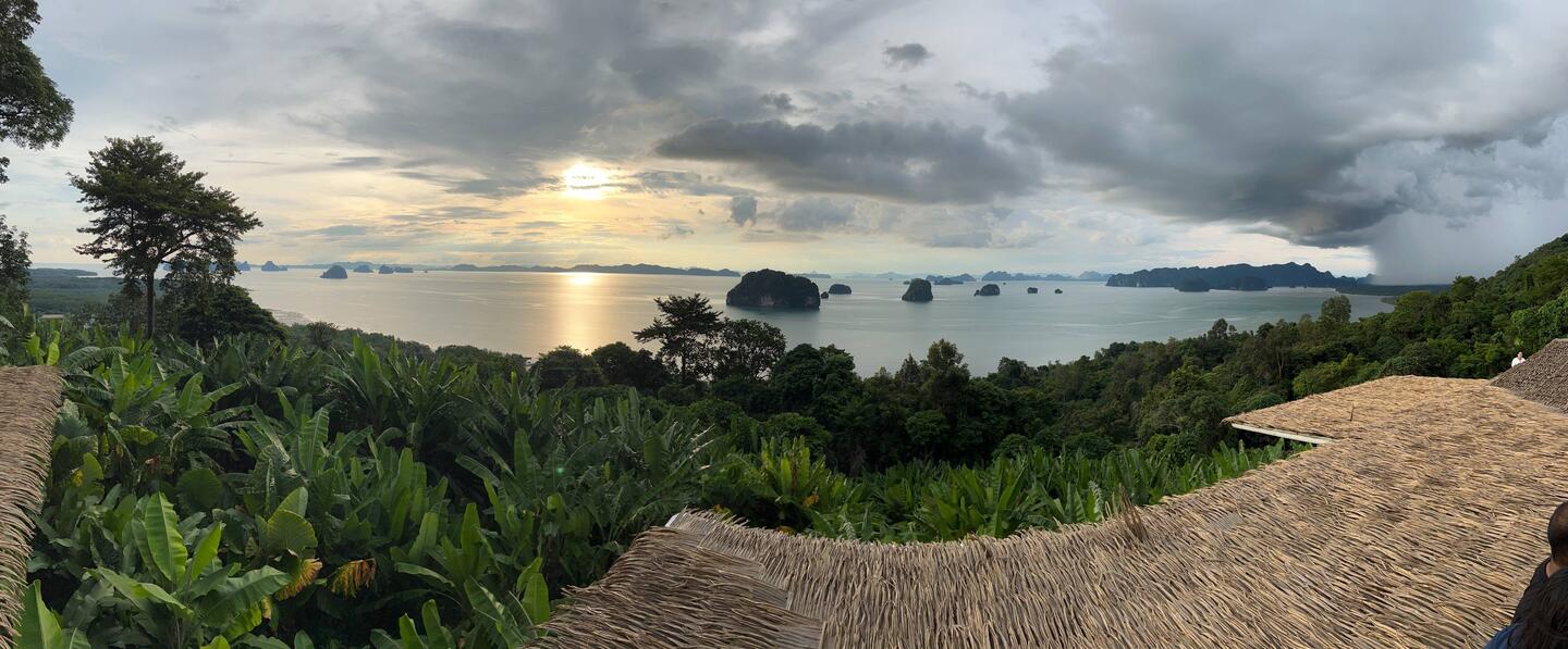 Abendessen auf dem Khaothong Hill mit tollem Ausblick auf die Phanh_Nga_Bucht, Das Restaurant ist ein beliebtes Ausflugsziel und muss für den Hang bereits am Fuß des Berges Eintritt zahlen. DafürLeggi altro