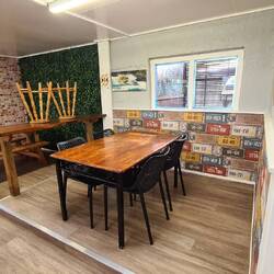 Staying in a cabin while getting work done on our caravan. Then midwinter xmas with friends.