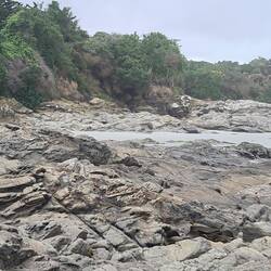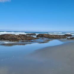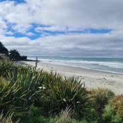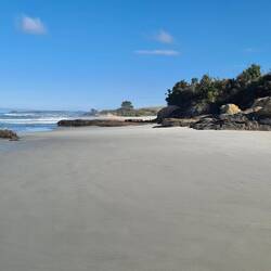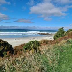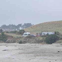 Cruising along looking for a spot to stay, we stumbled across this gem—big enough for us at 14m! Right next to the beach, just how we like it.