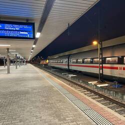 Mitten in der Nacht klingelt unser Wecker und wir fahren mit dem Taxi zum Badischen Bahnhof. Von hier startet unser ICE um 4:56 Uhr nach Hamburg.