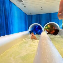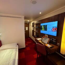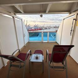 Gefühlt haben alle 5000 Passagiere den selben Check-In-Slot zugeteilt bekomme wie wir 🫣. Es dauert 1.5 h bis wir endlich an Bord dürfen. Dort dürfen wir jedoch direkt auf unsere Kabine 17002, woLæs mere