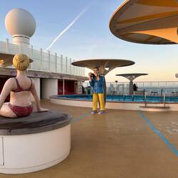 Bis wir einen Platz zum Abendessen finden ist es ein Kampf. Das Schiff ist ausgebucht und das merkt man in jedem einzelnen Buffet-Restaurant. Katastrophe 😳.