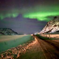 Unsere ersten Gehversuche mit der Aurora Borealis beginnen auf einem dunklen Parkplatz. Am Vorder-/ Hintergrund müssen wir also definitiv noch arbeiten, aber da wir hier im Dunkeln angekommen sind,Leggi altro
