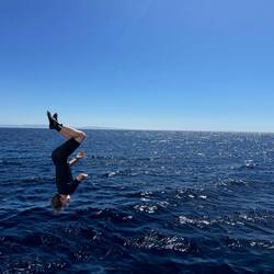 Diving and sunbathing