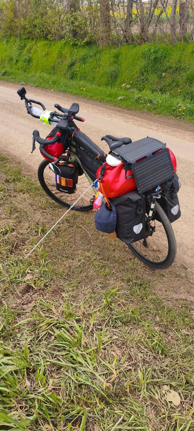 Truc de vieux routard pour tenir le vélo . Il est pas con quand même 😂.👉🧠