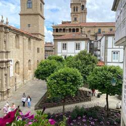 Today was a day of celebration! We made it to Santiago shortly before noon, and the rain held off until later in the day. ¡Un milagro! It is always exhilarating to walk into the Praza do ObradoiroRead more