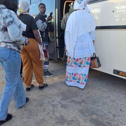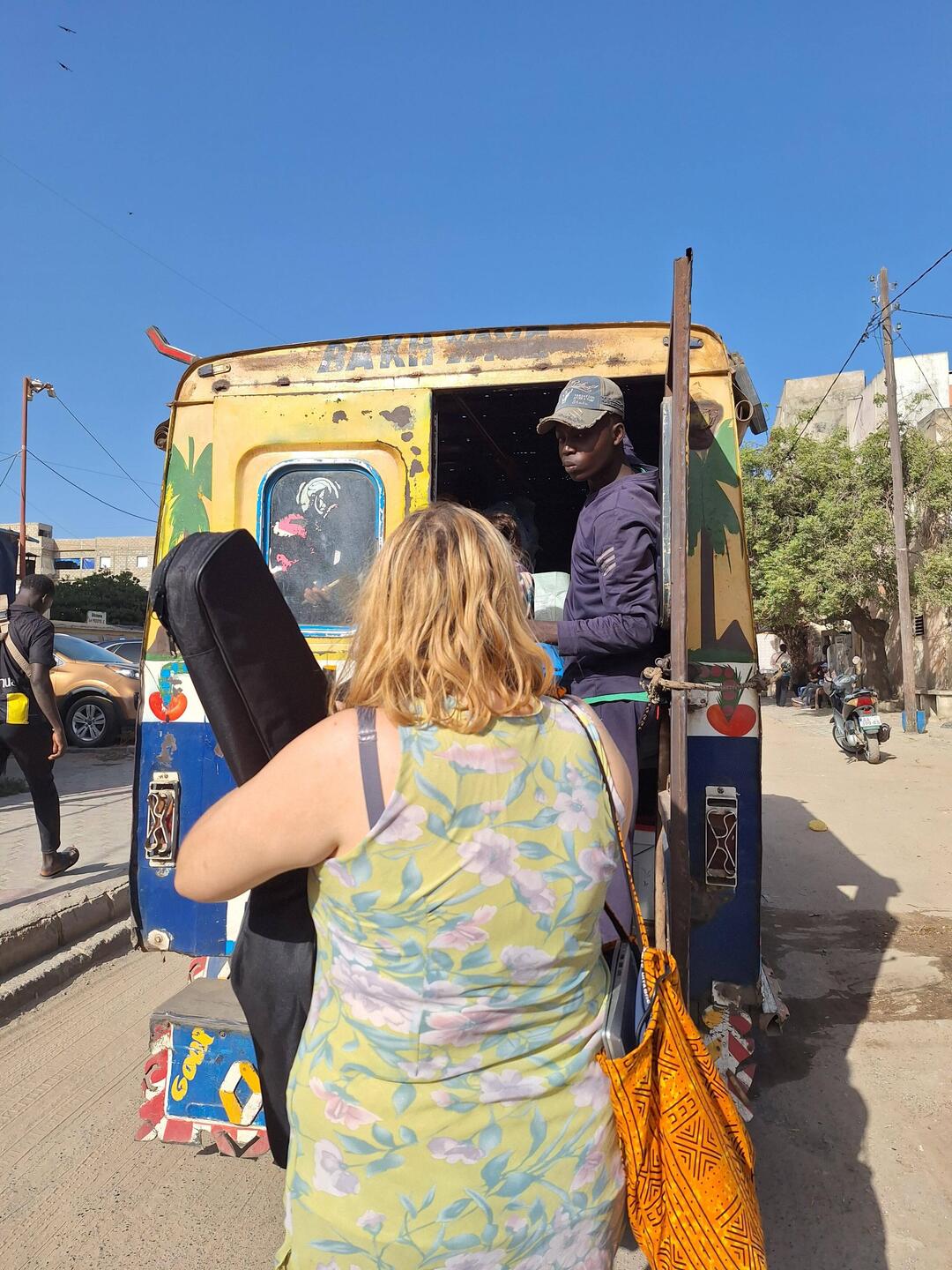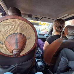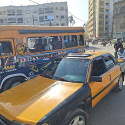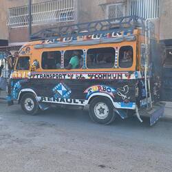 6 Uhr morgens geht's los. Wir gehen zur Bushaltestelle und fahren im modernen Reisebus zurück nach Dakar. Unterwegs gibt es Cafe Touba, ein mit Pfeffer gewürzter, süßer Kaffee.
