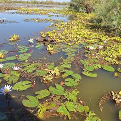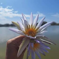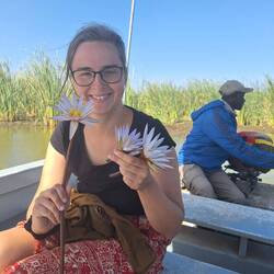 Unterwegs bekommen die Damen Seerosen vom Guide geschenkt. Das Innere der Blüten konnte man essen. Es war nicht besonders schmackhaft, aber wieder einmal interessant, was man alles essen kann.