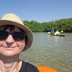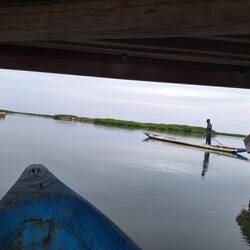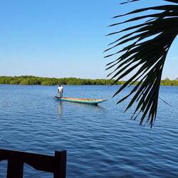 Mit unserem Guide Laurent geht es auf Kanutour im Sine Saloum Delta. Ganz gemütlich fahren wir durch die Mangroven. Ohne Guide kann man sich hier schnell verfahren. Es gibt unzählige Verzweigungen.Read more