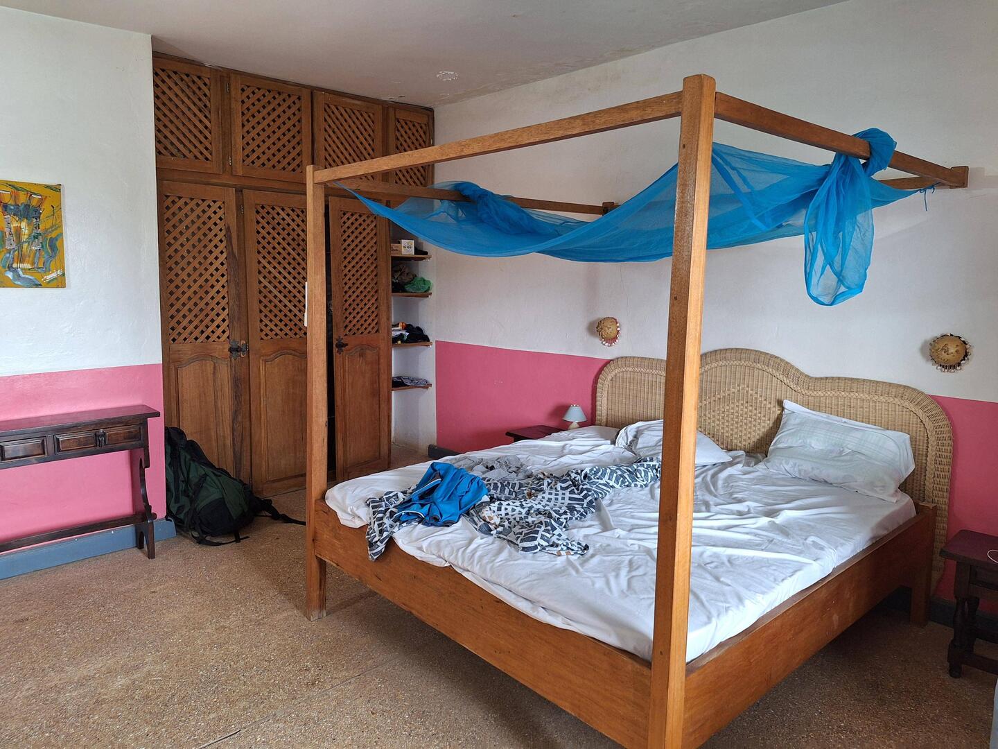 Ortswechsel nach Stankt Louis, wir fahren im Taxi ca. 4h. Im Ort angekommen, merken wir, dass wir gar keine richtige Adresse haben. Nach Kontakt mit dem Eigentümer läuft alles problemlos. Wir laufenRead more