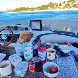 Frühstück gabs kurz nach acht. Leider mit jeder Menge Wespen 🐝