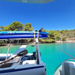 Dieses Jahr sind wir mit einem VW Bus unterwegs, da das neue Beiboot mit nach Italien musste.