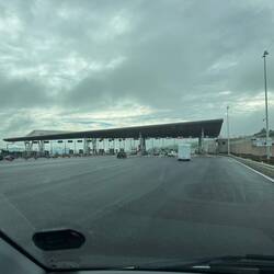 Eben eine Hochzeitsgesellschaft laut hupend vorbeigefahren. Mein Beifahrer und Bodyguard genervt rein in den Bus und war nicht mehr zu bewegen raus zu kommen.