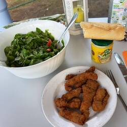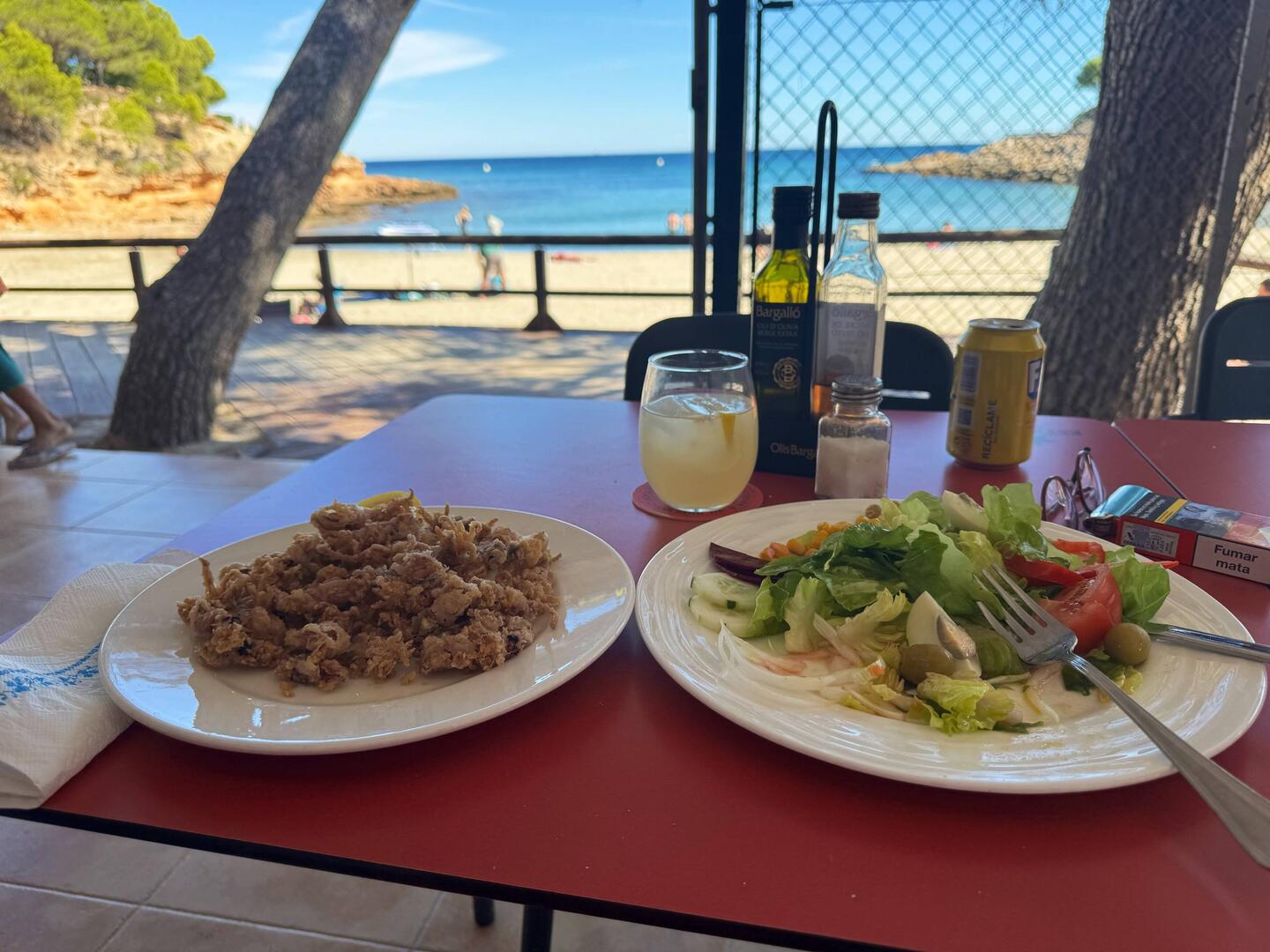 Heute habe ich mir ein leckeres Mittagessen auswärts gegönnt. Frittierte Babycalamares mit Salat…hmmmmm😋 Und am Strand schmeckt es doppelt so gut😁