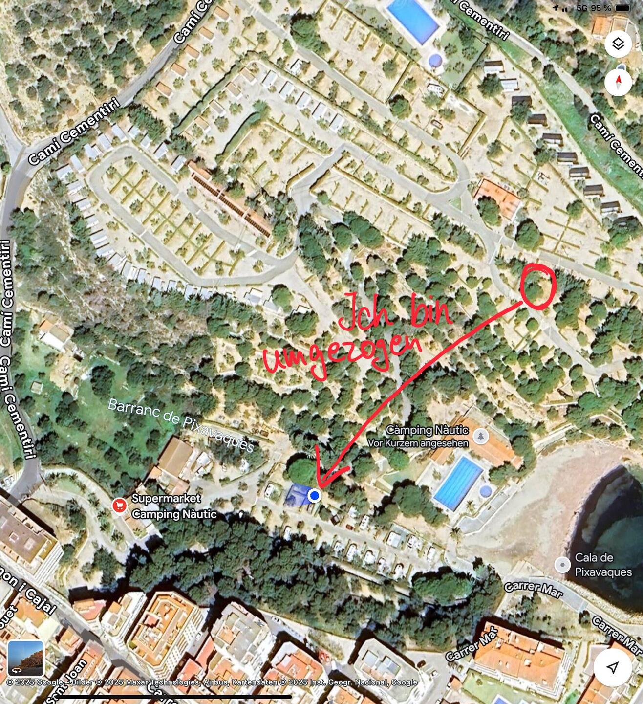 Heute habe ich mich auf den Weg zum nächsten Campingplatz aufgemacht. Der heißt lustigerweise auch „Nautic“ so wie der erste😊 Ist nur 12km von Miami Platja entfernt.