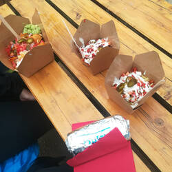 Kräftige Stärkung für unseren Trip und auf geht's. Das Abenteuer beginnt!