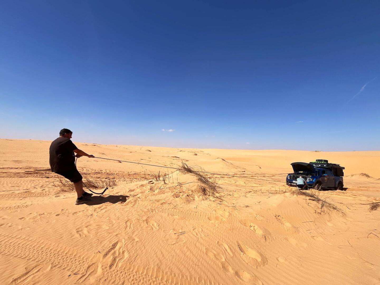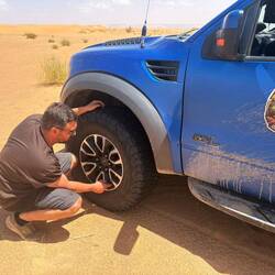 Banden lossen voor het zand