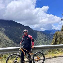 Laureen, Joel and myself got picked up at 8:30 to drive the death road and an asphalt way down. We started at 4600m and went down to 2000. most of the time we droveLæs mere