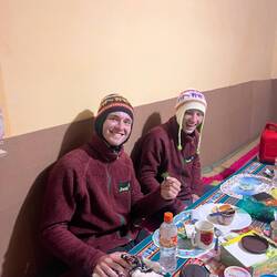To be best prepare for the climb we slept ~10h. Then we had breakfast, played cards and waited for three other people, who are doing „only“ the 2day tour. We hiked ~2h to the rock camp at 5230m.Læs mere