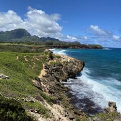 The hiking trail from Turtle Bay to Kahaku Point, the northern most point of Oahu island, is only a couple miles long. We walked along the ocean, on the beaches, or on the volcanic rocks by the water. Many juicy looking crabs hurried away from us, making me pondering what I would want to eat for dinner…